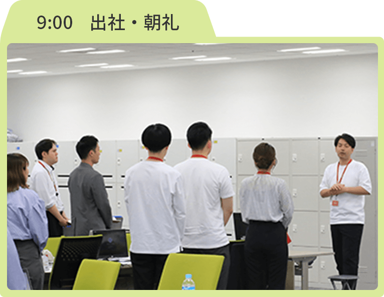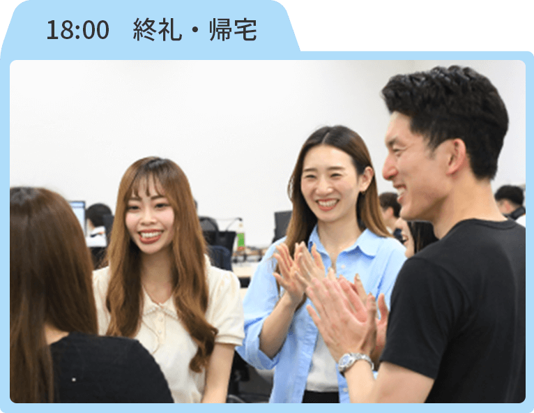 終礼では、目標に対しての進捗を確認します。目標達成したらみんなで拍手。