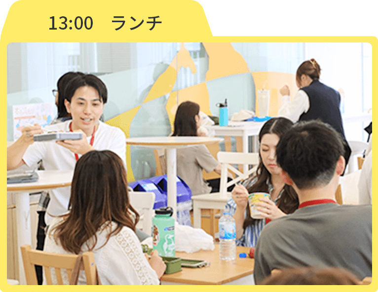 13:00~14:00の1時間が基本的な休憩時間です。配属先によっては、異なる場合もあります。