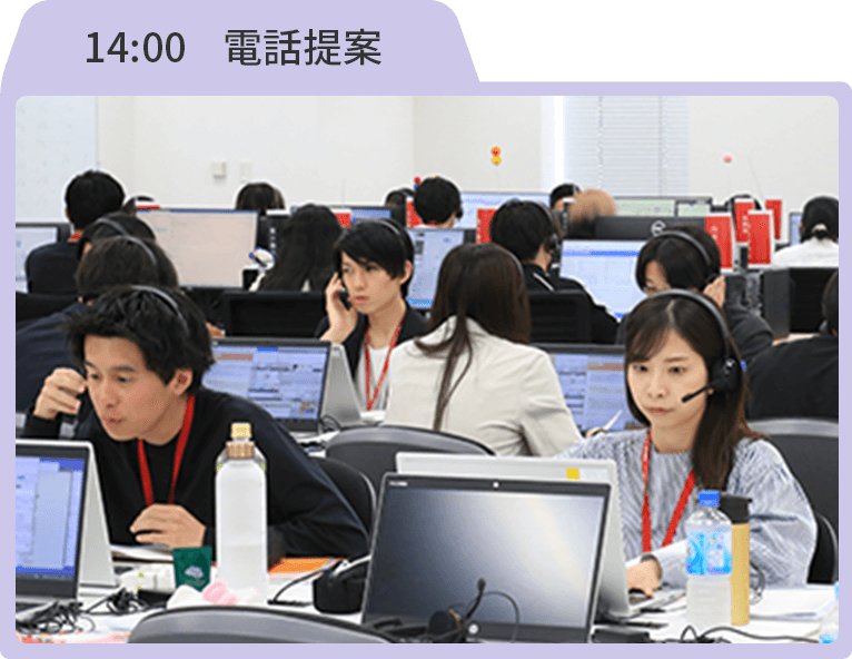 トークスクリプトを参考にインターネットやでんきのご提案をします。興味を持っていただけたら、先輩社員にバトンタッチ。 -